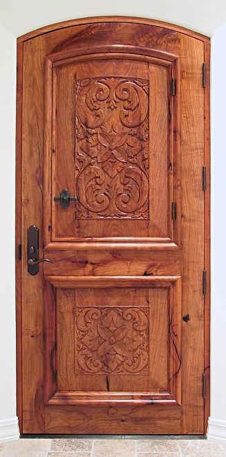 carved mesquite entry. The top panel in hinged and opens to a glass
